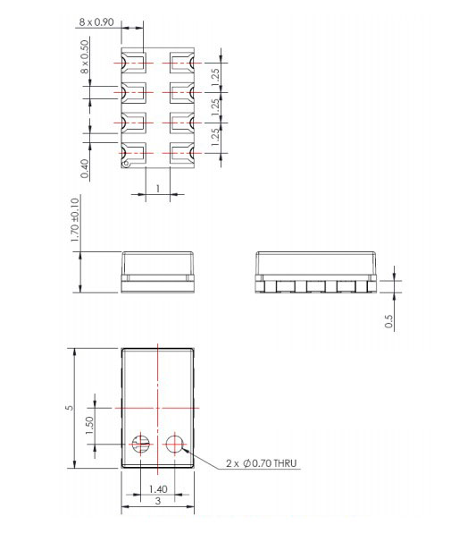 低功耗1μA,集成數字壓力傳感器(24位ΔΣ模數轉換器),I²C和SPI接口,高達20 MHz,無需外部元件(內部振蕩器),分辨率可達10CM